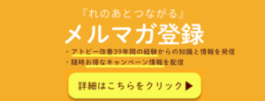 れのあメルマガについて(毎週火曜配信) アトピーの方が一人でも多く笑顔になれるよう39年間の経験を通して得てきた知識と情報を、読者の皆様へお伝えいたします。皆様の勇気の後押しをいたします。 また、号外にて随時、お得なキャ … 続きを読む アトピー改善に役立つ「無料メルマガ」
